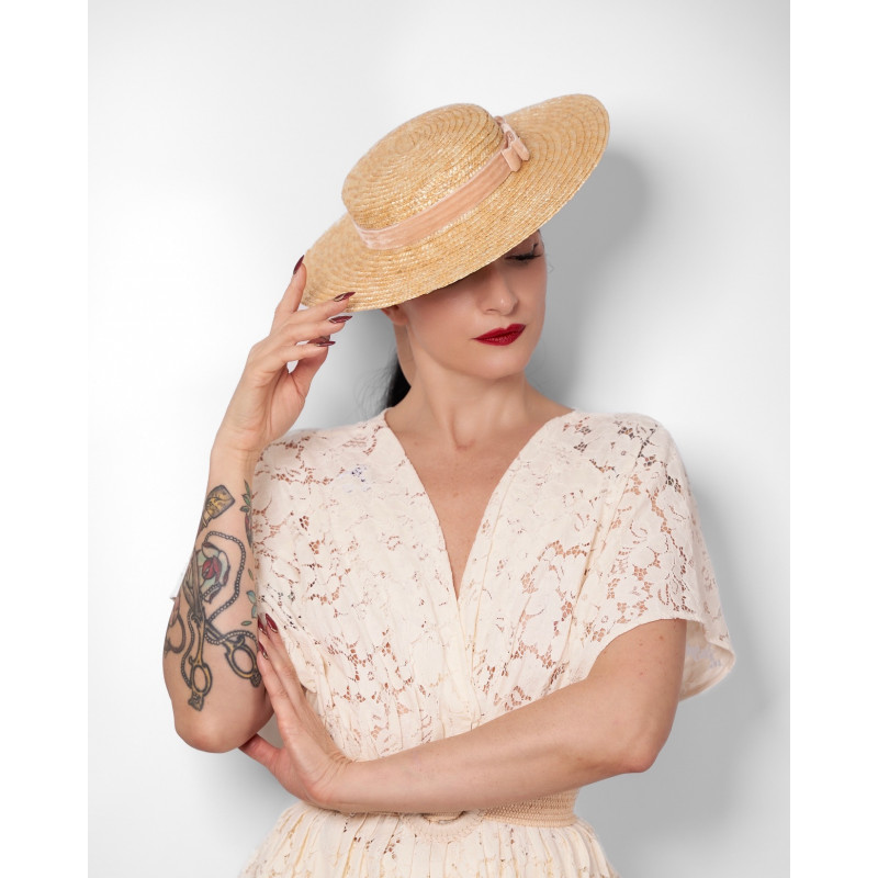 You prefer a small and simple hat for your adventures ? The ANNE small boater hat in natural straw will be your perfect companion !