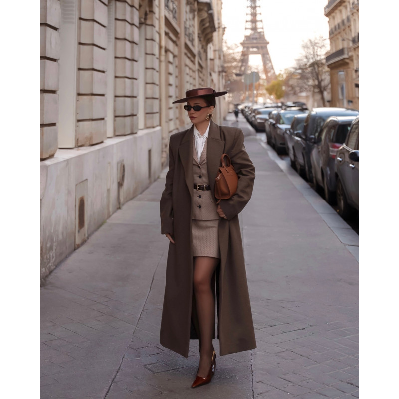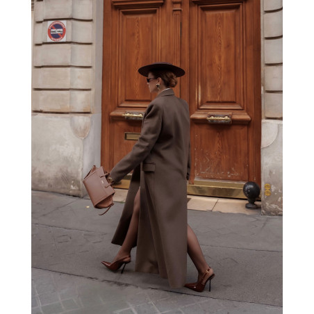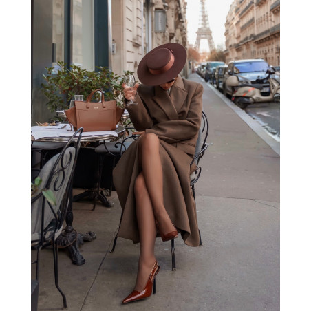 Chapeau canotier femme mocha marron foncé 100% laine, orné de rubans en satin d'un noeud plat .