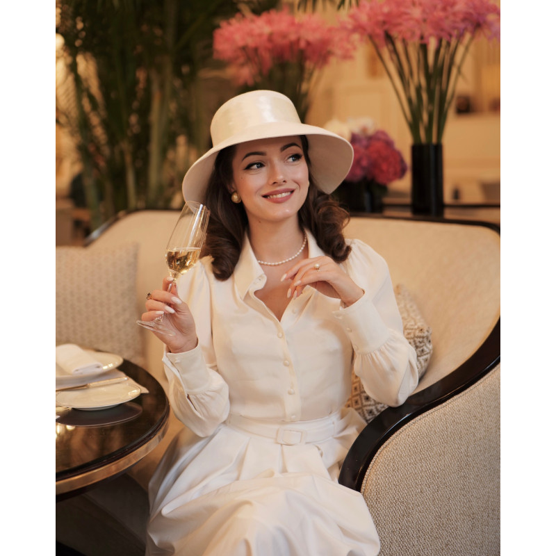 Oui, vous avez raison, c’est notre version du chapeau d’Audrey Hepburn le plus célèbre de « Breakfast at Tiffany’s ».